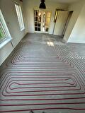 Vloerverwarming h.o.h. 10cm ingeslepen met een maximale oppervlakte van 8m² en slanglengte van 80 meter per groep.